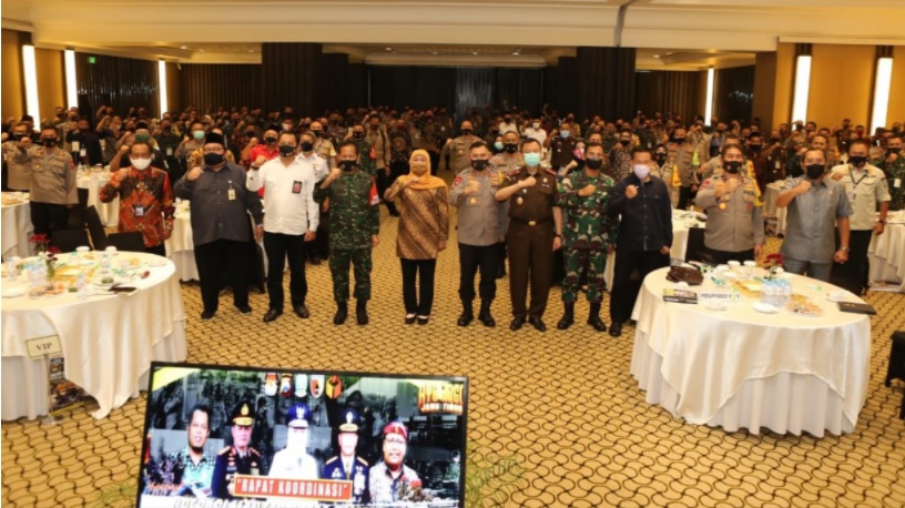 Hadir pada kegiatan tersebut, Gubernur Jawa Timur, Khofifah Indar Parawansa, Pangdam V Brawijaya Mayor Jenderal TNI Widodo Iryansyah, Kejati Jawa Timur, Penyelenggara pemilu, Bawaslu dan KPU serta perwakilan Partai politik (parpol).