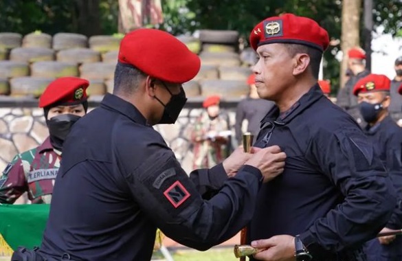 Komandan Jenderal Komando Pasukan Khusus, Mayor Jenderal TNI Teguh Muji Angkasa, S.E., M.M. menerima penghargaan berupa Penyematan Brevet Anti Teror dari Satuan-81 Kopassus.