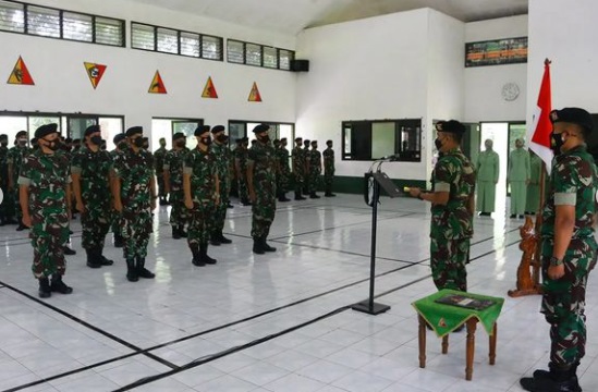 Komandan Batalyon Kavaleri 2/Turangga Ceta Letkol Kav Maryoto,S.E, M.Si, memimpin Upacara pelepasan prajurit yang pindah satuan, bertempat di aula Wira Turangga, Ambarawa.