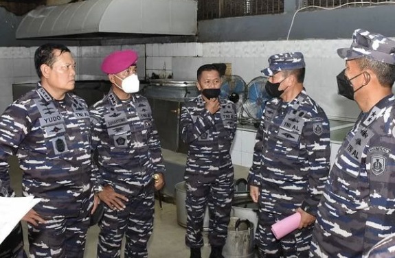 Kepala Staf Angkatan Laut (Kasal) Laksamana TNI Yudo Margono didampingi Komandan Komando Pembinaan Doktrin Pendidikan dan Latihan TNI Angkatan (Dankodiklatal) Letnan Jenderal TNI Marinir Suhartono melaksanakan inspeksi infrastruktur fasilitas pendidikan yang berada di Bumimoro Kodiklatal Surabaya. Jumat (18/3/2022).