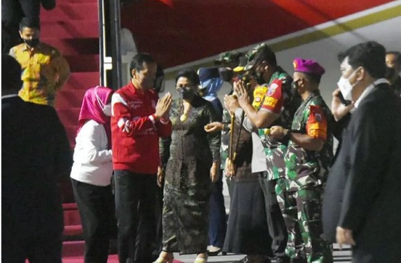Komandan Lanud I Gusti Ngurah Rai Kolonel Pnb Reza R.R. Sastranegara S.Sos., M.A.P., menyambut kedatangan Presiden Republik Indonesia Ir. H. Joko Widodo dan ibu Iriana Joko Jokowi beserta rombongan, dalam rangka Kunjungan Kerja di Bali, bertempat di Apron Bandara I Gusti Ngurah Rai, Minggu (20/03/2022).