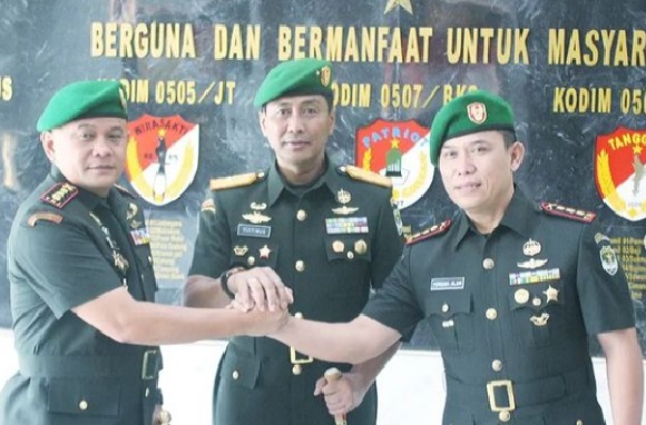 Danrem 051/Wijayakarta Brigjen TNI Yustinus Nono Yulianto, S.E, M.Si memimpin sertijab Dandim 0505/Jaktim dari Kolonel Inf Persada Alam kepada Kolonel Arm Yogo Widiatmoko, S.Sos, M.Tr (Han) & Kasiter Korem 051/Wkt dari Kolonel Arm Yogo Widiatmoko, S.Sos, M.Tr (Han) kepada Letkol Inf Robinson Tallupadang, S.I.P, M.H bertempat di Serambi Kehormatan Prajurit Makorem 051/Wijayakarta. Selasa (10/5/2022).