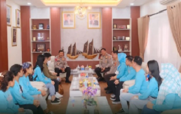 Kapolda Sulsel Irjen Pol Drs Nana Sudjana AS, M.M Bersama Brigjen Pol CH Patoppoi S.St., M.K., SH. dan Dirbinmas Kombes Pol H.Andi Heru Santo, S.St., M.K., S.H., M.H Menerima Audiensi Tim Festival Nusantara Gemilang Dalam Rangka Hari Bhayangkara ke-76 dengan Kapolda Sulsel di Ruang Tamu Pa’rimpungan Toana Bharadaksa Mapolda Sulsel, Selasa (21/06/2022).