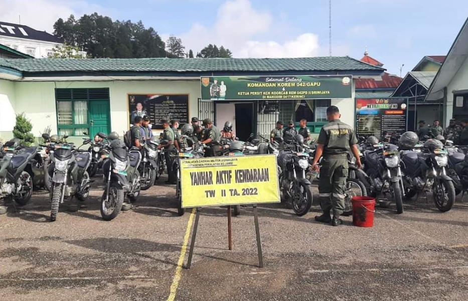Tim Pemeliharaan dari Detasemen Peralatan (Denpal) “B” 02-12-02 Jambi TW II Tahun 2022 yang dipimpin oleh Kpt Cpl Iin Nurjai beserta team Harpal melakukan kegiatan pengecekan secara fisik dan pemeliharaan kendaraan dinas Kodim 0417/Kerinci di lapangan Apel Makodim 0417/Kerinci. Rabu (22/06/2022).