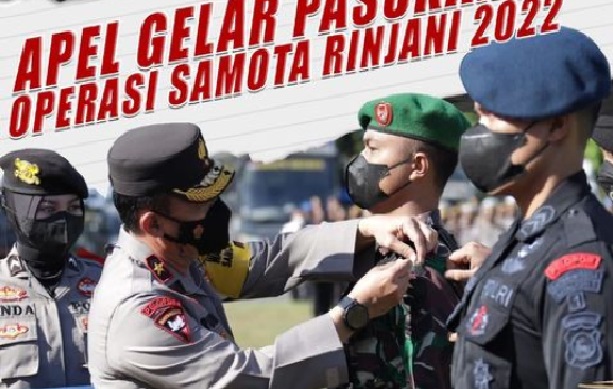 Polda NTB melaksanakan apel gelar pasukan gabungan Operasi Samota Rinjani 2022 di halaman Kantor Bupati Sumbawa. Rabu (22/6/2022),