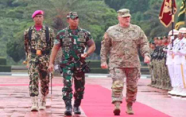 Kedatangan U.S Chairman of joint chieft of staf General Mark A. Milley di sambut langsung oleh Jendral TNI Andika Perkasa berserta para staf.