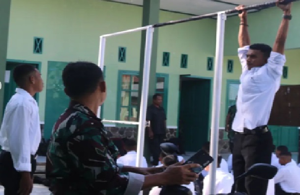 Menjelang Akhir Penutupan Penerimaan Calon Prajurit TNI AD yang mendaftarkan diri di Kodim 1509/Labuha, Kampung Makian, Bacan Selatan, Personil Kodim 1509/Labuha Pun Menunjukkan Kepedulian terhadap para Pendaftar dengan cara memberikan Tips Praktis untuk membina Fisik dan Jasmani yang sesuai dengan Prosedur dan Ketetapan oleh TNI, Senin (19/09/2022).