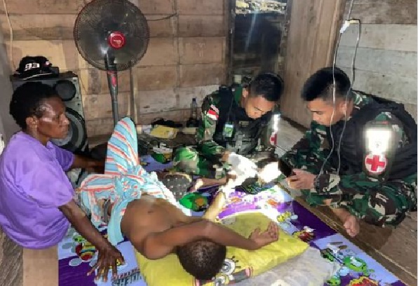 “Minggu malam, (18/9) kurang lebih pukul 22.20 WIT, Ibu Veronika mendatangi Pos Koki A/Kanggewot Satgas Yonif 725/Woroagi dengan maksud meminta bantuan tim kesehatan untuk memeriksa anaknya yang bernama Isak (13) yang terbaring sakit di kediamannya”, ungkap Reynald.