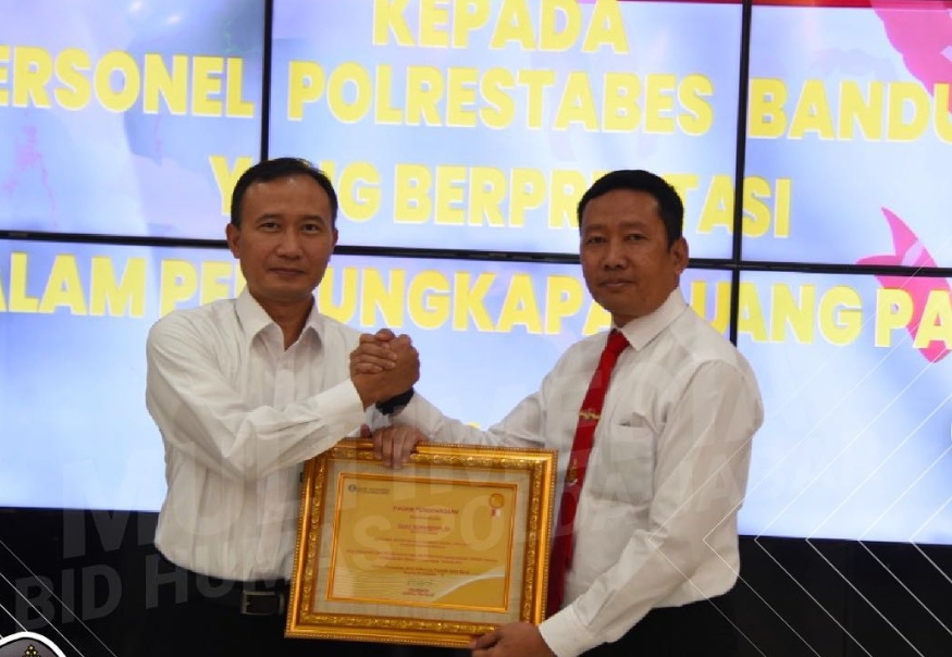 Perhargaan itu diberikan atas apresiasi Bank Indonesia terhadap personil Sat Narkoba Polrestabes Bandung yang berhasil mengungkap kasus pemalsuan uang rupiah saat melakukan pengungkapan penyalahgunaan narkotika jenis sabu.