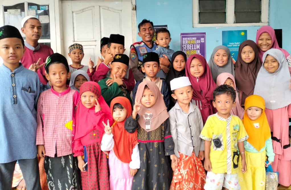 Pada kesempatan tersebut Bhabinkamtibmas juga memberikan bantuan Alquran terhadap santri dan santriwati di TPQ Raudhotul Ulum guna menunjang kelancaran mengaji pada para ananda di kampung binaan.