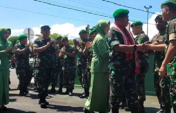 Seluruh anggota baik prajurit maupun PNS Kodim 1501/Ternate memberikan salam dan penghormatan sambil menyayikan lagu selamat datang.