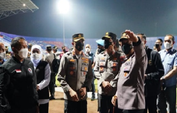 Kapolri Jenderal Polisi Drs. Listyo Sigit Prabowo. M.Si., meninjau lokasi terjadinya kerusuhan suporter di Stadion Kanjuruhan, Malang, Jawa Timur, Minggu (2/10/2022).