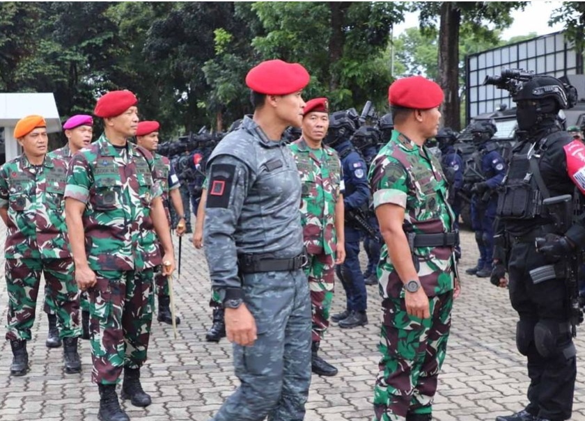 Menjelang Konferensi Tingkat Tinggi (KTT) KTT G-20 guna memastikan kegiatan berlangsung aman, jajaran Kopasgat dari Wingko I Kopasgat dan Satbravo 90 Kopasgat ikuti Gelar Pasukan di Mako Koopsus TNI, Mabes TNI, Jakarta. Kamis (3/11/2022).