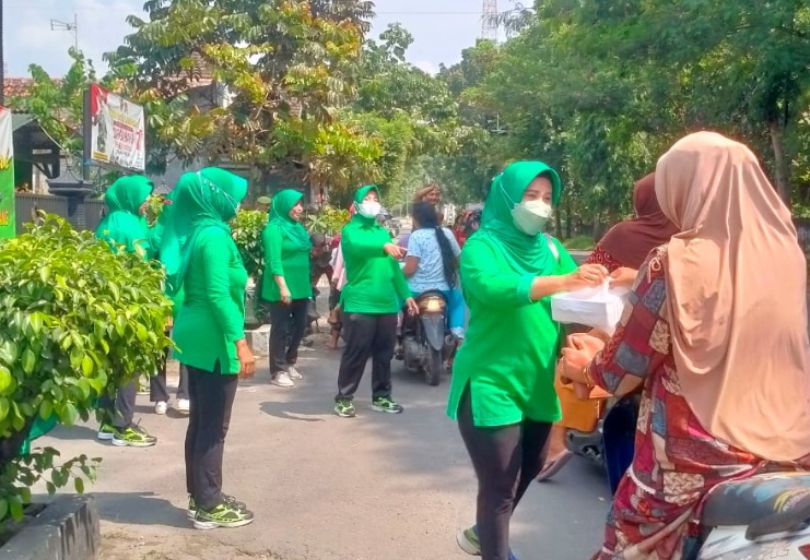 Pembagian nasi kotak itu, dilakukan di depan halaman Makoramil Ngimbang. Terlihat, beberapa personel Koramil dan Persit pun membagikan ratusan nasi kotak pada warga yang melintas di depan halaman Makoramil.