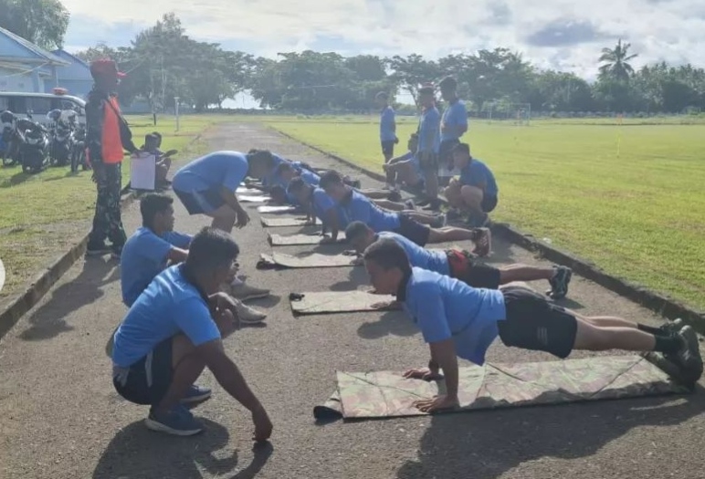 Sebelum pelaksanakan tes samapta anggota Lanud Leo Wattimena Pulau Morotai diwajibkan melaksanakan pengecekan kesehatan dan pemanasan untuk menghindari terjadinya cedera.