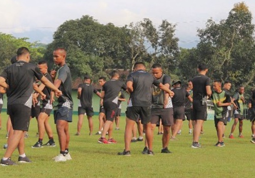 Prajurit Condromowo Yonif Raider 509 Kostrad laksanakan latihan Beladiri Taktis yang dilaksanakan di lapangan bola Mayonif Raider 509/Balawara Yudha. Kecamatan Sumber Sari, Kabupaten Jember. Pada Sabtu (26/11/2022).