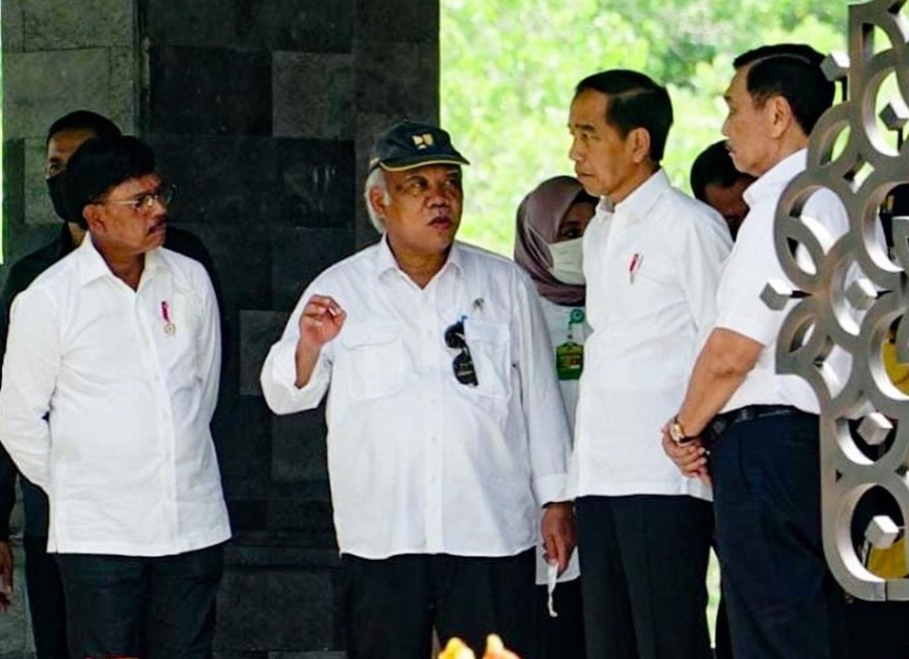 Presiden RI Joko Widodo (Jokowi) didampingi Menteri PUPR Basuki Hadimuljono, Menkomarves Luhut Pandjaitan, Menteri Luar Negeri Retno Marsudi, Menkominfo Johnny Plate, Mensetneg Pratikno, dan Gubernur Bali memastikan kesiapan infrastruktur pendukung Presidensi Indonesia pada Konferensi Tingkat Tinggi (KTT) G20 dengan meninjau kawasan Rehabilitasi dan Konservasi Hutan Mangrove Tahura Ngurah Rai, Denpasar, Selasa (8/11/2022).