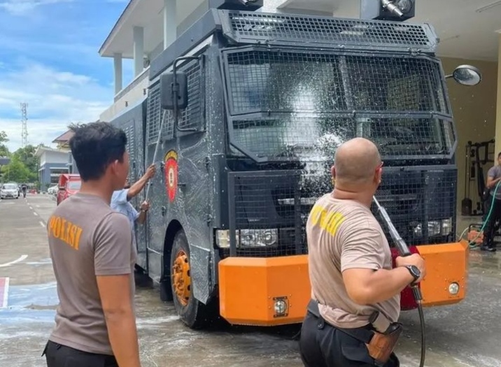 “Kendaraan Armored Water Canon (AWC) adalah salah satu sarana dan prasarana yang dimiliki Sat Samapta Polresta Tangerang dalam membantu penanggulangan ujuk rasa, harus tetap baik kondisinya,” kata IPDA Yuandhika Kresna Sang Damar. Senin (21/11/2022).