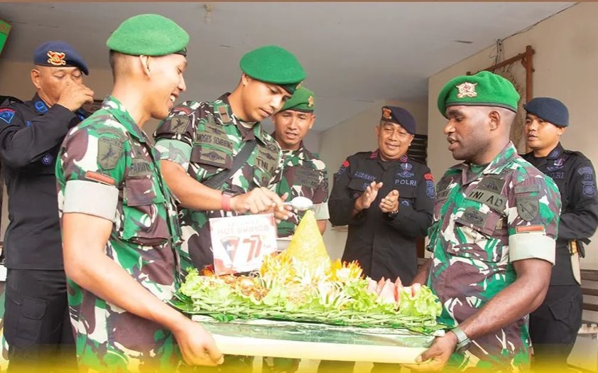 Yonif 731/Kabaresi beserta seluruh jajaran Kompinya secara serentak memberikan Surprise kepada Satuan Brimob. (14/11/2022).