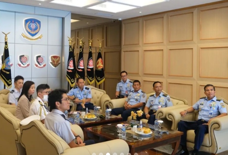 Asintel Kaskoopsudnas Marsma TNI Ridha Hermawan, M. Han., mewakili Panglima Koopsudnas Marsdya TNI M. Tonny Harjono, S.E., M.M. saat menerima kunjungan delegasi Intelligence Exchange Japan Self Defenve Force (JASDF) di Makoopsudnas, Halim Perdanakusuma, Jakarta Timur, pada Senin (19/12/2022).