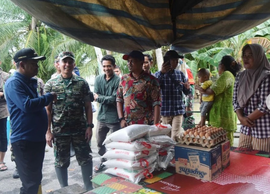 Bupati Serdang Bedagai, H. Darma Wijaya bersama Kapolres Serdang Bedagai, AKBP Dr. Ali Machfud, Komandan Kodim 0204/DS, Letkol Czi Yoga Febrianto mengunjungi dan menyerahkan bantuan kepada warga yang terdampak korban banjir di Desa Sei Rejo, Kecamatan Sei Rampah, Kabupaten Serdang Bedagai, Kamis (15/12/22).