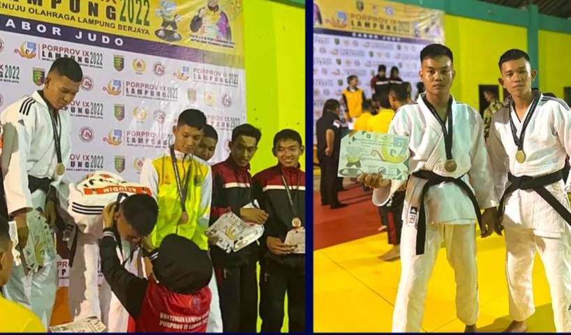 Dua Atlit Judo asuhan Waka Polres Mesuji Polda Lampung menyumbangkan 2 Medali Emas dalam ajang Perlombaan Porprov yang di adakan setiap Empat Tahun Sekali, Minggu (11/12/22)
