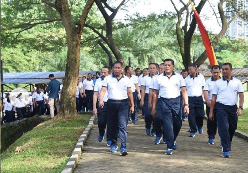 Prajurit petarung Pasmar 1 dibawah pimpinan Komandan Pasmar 1 (Danpasmar 1) Brigjen TNI (Mar) Dr. Hermanto, S.E., M.M., CSBA., melaksanakan olahraga bersama Kepala Staf TNI Angkatan Laut (Kasal) Laksamana TNI Yudo Margono, S.E., M.M.,