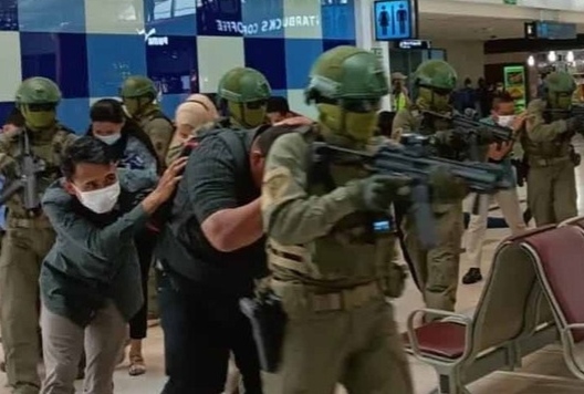 Dalam skenario latihan ini 2 orang teroris berhasil menyandera sejumlah penumpang. Aksi tersebut dilakukan untuk menuntut kepada pihak keamanan agar membebaskan rekan mereka yang 30 menit sebelumnya telah ditangkap saat marakit bom di dalam bandara, menyiapkan 1 helikopter serta menyiapkan uang sebesar 40 miliar rupiah.