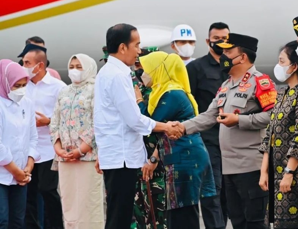 Kapolda Sumut Irjen Pol Drs. R.Z. Panca Putra S, M.Si didampingi Ketua Bhayangkari Daerah Sumut Ny. Rita Panca menyambut kedatangan Presiden Joko Widodo dan Ibu Iriana Joko Widodo di Lanud Soewondo Medan, Rabu (08/02/2023).
