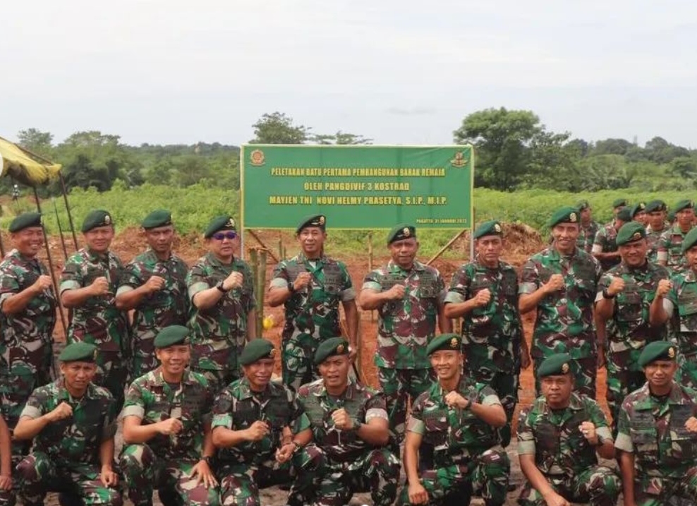 Panglima Divisi Infanteri 3 Kostrad, Mayjen TNI Novi Helmy Prasetya., S.I.P, M.I.P. secara resmi mengawali peletakan batu pertama pembangunan Barak Remaja yang bertempat di Mako Divif 3 Kostrad, Selasa (31/1/2023).