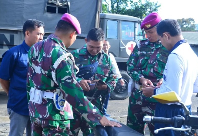 Provost Batalyon Kesehatan 1 Marinir (Yonkes 1 Marinir) laksanakan kegiatan penertiban kendaraan bermotor personil di depan penjagaan Yonkes 1 Marinir, Kesatrian Marinir Cilandak, Jakarta Selatan. Selasa (07/03/2023).