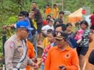 Anggota Satlantas Polres Lamandau Polda Kalteng melakukan Penyisiran tempat kejadian Laka Lantas di pinggiran sungai Desa Karang Taba Kab. Lamandau, Minggu (26/03/2023).