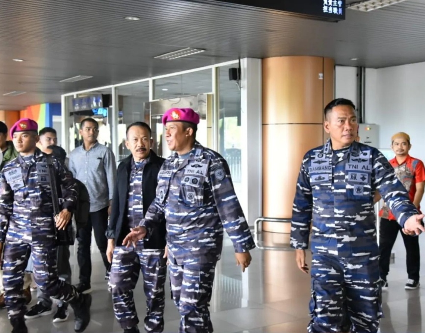 Wakil Komandan Pangkalan Utama TNI Angkatan Laut (Wadan Lantamal) XII Kolonel Marinir Budiarso, S.E. mewakili Danlantamal XII Pontianak Laksamana Pertama TNI Dr. Suharto menyambut kedatangan Inspektur Korps Marinir Brigjen TNI (Mar) Cecep Ruhiat di Bandara Supadio Jalan Arteri Supadio km. 17 Kubu Raya, Kalimantan Barat, Jumat (03/03/2023).