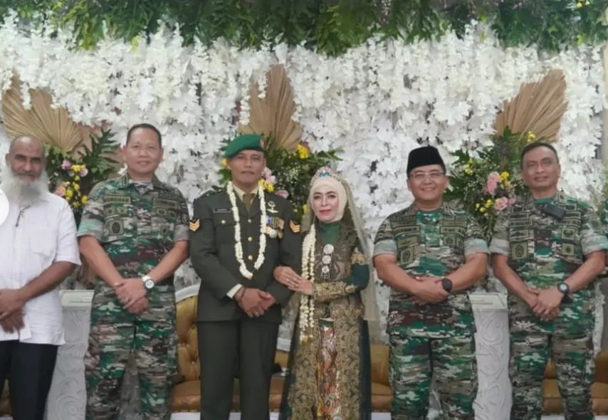 Bentuk Dan Kepedulian Danrem 064/MY Hadiri Resepsi Pernikahan Anggota.
