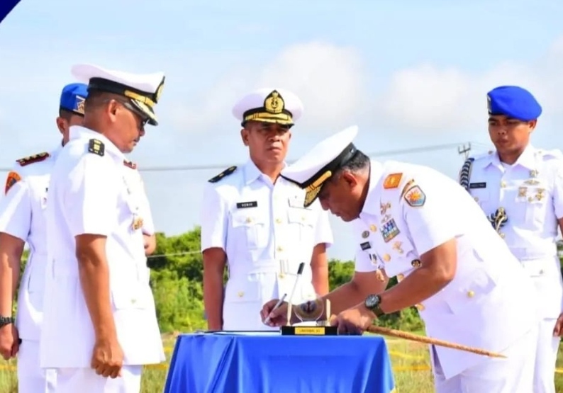 Komandan Pangkalan Utama TNI Angkatan Laut (Danlantamal) XII Laksamana Pertama TNI Dr. Suharto mempimpin upacara Pengukuhan Asrena Danlantamal XII, Kadispotmar Lantamal XII dan Komandan Denma Lantamal XII di Mako Lantamal XII Jalan Wajok Hilir km. 17 Kabupaten Mempawah Kalimantan Barat, Senin (08/05/2023).