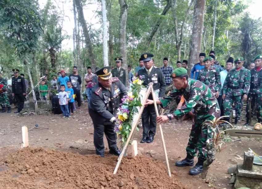 “Kepada keluarga yang ditinggalkan semoga diberikan ketabahan dan kesabaran. Selanjutnya kami mengajak kepada hadirin sekalian marilah dengan rasa tulus dan ikhlas memaafkan segala kesalahan Almarhum yang disengaja maupun yang tidak disengaja di dalam pergaulan hidup sehari-hari dan kepada semua pihak yang telah memberikan bantuan baik moril maupun materil saya dan atas nama keluarga besar TNI mengucapkan terima kasih yang sebesar-besarnya, Semoga Tuhan yang maha kuasa membalas budi baik bapak ibu saudara sekalian,” ucap Dandim.