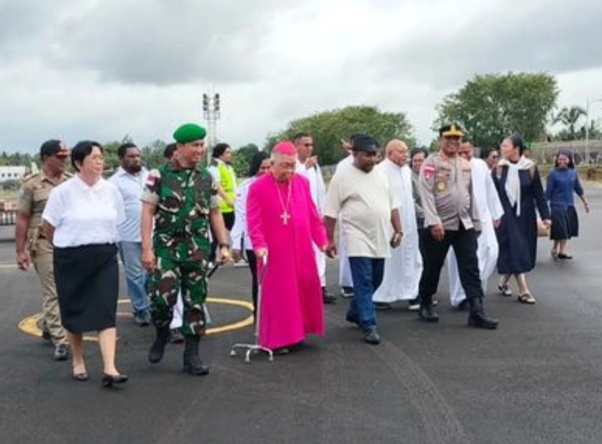 DANDIM BOVEN DIGOEL BERSAMA FORKOPIMDA SAMBUT KEDATANGAN USKUP AGUNG MERAUKE