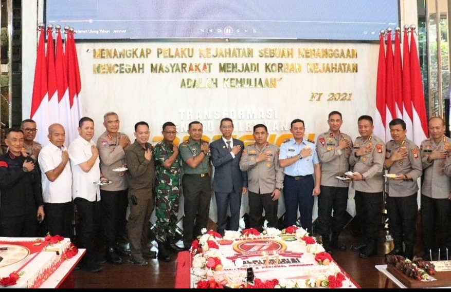 Dengan rasa penuh kebahagiaan, Irjen Pol Karyoto, S.I.K., M.H., menyampaikan ucapan terima kasih atas kehadiran para pejabat Forkopimda Jakarta juga kejutan yang diberikan pada peringatan HUT ke-77 Polri.