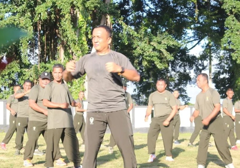 Komandan Kodim 1509/Labuha Letkol Kav Romy Sitompul dengan di dampingi oleh Ketua Persit KCK Cabang 37 Ny. Dora Romy Sitompul, dan Dan Para Danramil Jajaran Bersama Anggota Personil Koramil dan Persit Melaksanakan Senam dan Olahraga Bersama yang dilanjutkan dengan oraum bersama prajurit, bertempat di Lapangan Upacara Makodim 1509/Labuha, Desa Kampung Makian, Kecamatan Bacan Selatan, Kabupaten Halmahera Selatan, Jumat, (21/07/2023).