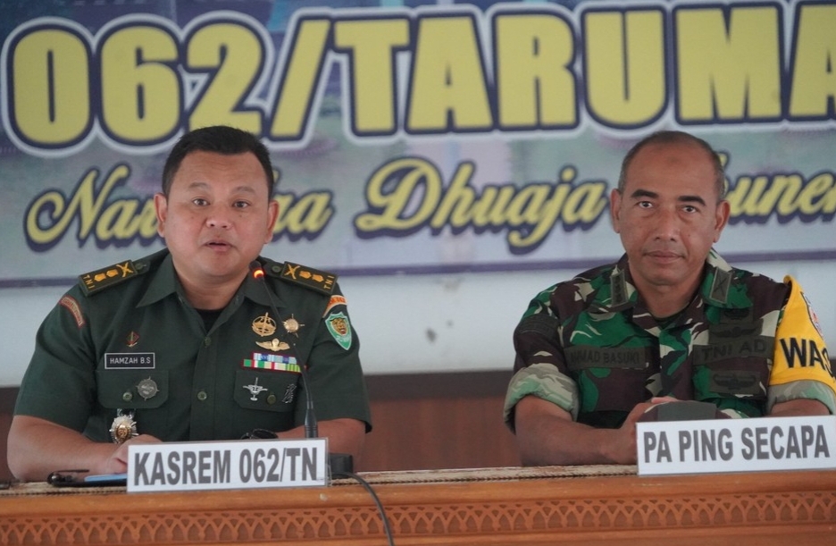 Komandan Korem 062/Tn Kol Arh Rudi Ragil. SP, S.Sos., M.Si., diwakili Kasrem 062/Tn Letkol Inf Hamzah Budi Susanto, S.E.,M.I.P., memberikan paparan satuan Korem 062/Tn dalam penerimaan siswa On The Job Training (OJT) Secapa AD TA. 2024 bertempat di Aula Purnawarman Korem 062/Tn Jln Bratayudha no. 65 Garut, Senin (03/06/2024).