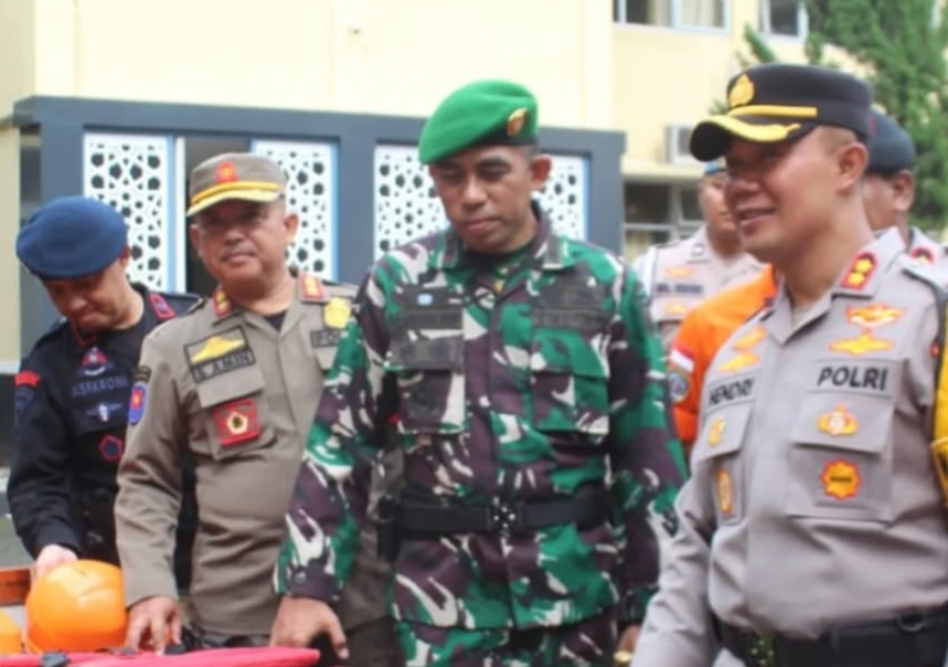 Usai apel, Dandim 0701/Banyumas serta Wakapolresta Banyumas melakukan pengecekan alat antisipasi bencana milik Polresta Banyumas dan BPBD.