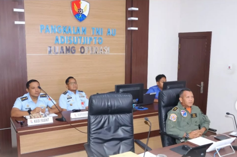 Kepala Dinas Potensi Dirgantara (Kadispotdirga) Lanud Adisutjipto Letkol Pnb Iwan Setiawan, S.A.P., mewakili Danlanud Adisutjipto Marsma TNI Setiawan, S.E., mengikuti Rapat Koordinasi Makan Bergizi Gratis secara video conference (vicon) dari Ruops Lanud Adisutjipto, pada Selasa (10/12/2024).