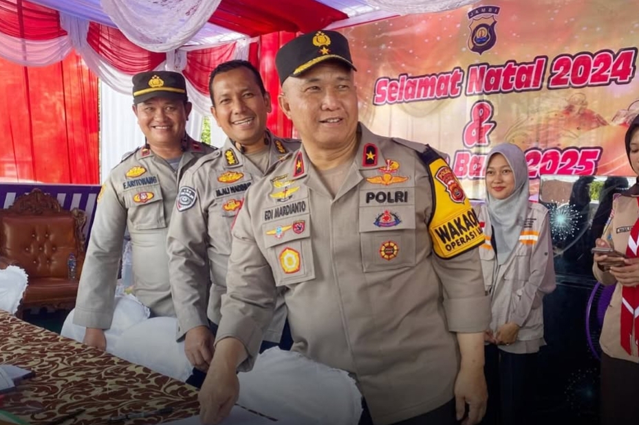 Pastikan Natal 2024 di Provinsi Jambi berjalan dengan dengan aman, Wakapolda Jambi Brigjen Pol. Edi Mardianto melakukan pengecekan Pos Pelayanan Operasi Lilin tahun 2024 di sepanjang jalan lintas Jambi Provinsi Jambi. Rabu, (25/12/2024).