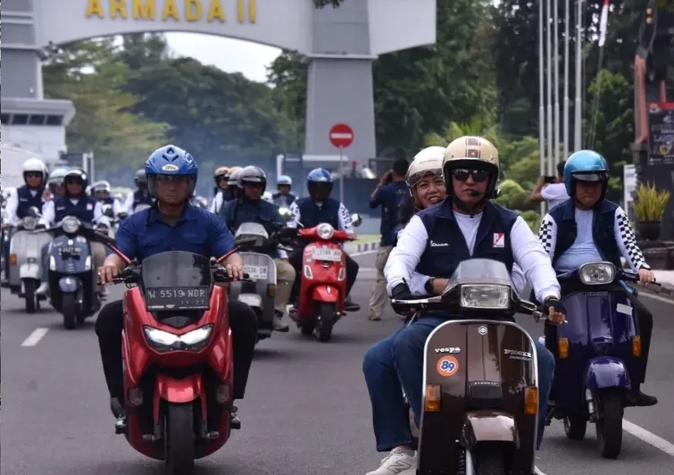 Komandan Kodiklatal (Dankodiklatal) Letjen TNI Marinir Nur Alamsyah bersama Ketua Gabungan Jalasenastri Kodiklatal Ny. Ayu Nur Alamsyah, mendampingi Kepala Staf Angkatan Laut (Kasal) Laksamana TNI Dr. Muhammad Ali dalam Vespa Ride, dalam rangka Hari Pendidikan TNI Angkatan Laut (Hardikal) Ke-79 Tahun 2025, Minggu (25/5/2025).
