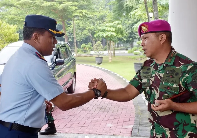 Komandan Pasmar 2 Brigjen TNI (Mar) Nanang Saefulloh, S.E., M.M., menerima kunjungan kerja Komandan Pangkalan TNI AU (Danlanud) Muljono Kolonel PNB Ahmad Mulyono, S.E., M.M., di Mako Pasmar 2, Kesatrian Marinir Moekijat, Gedangan, Sidoarjo. Selasa (27/05/2025).