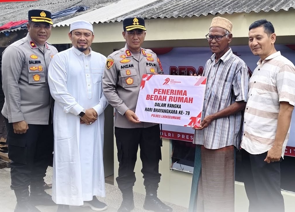 Dalam rangka memperingati Hari Bhayangkara ke-79, Polres Lhokseumawe kembali menunjukkan komitmennya dalam mendekatkan diri dengan masyarakat melalui aksi nyata. Salah satunya diwujudkan dalam bentuk program bedah rumah bagi warga kurang mampu di wilayah hukum Polres Lhokseumawe. Jumat (27/6/2025).