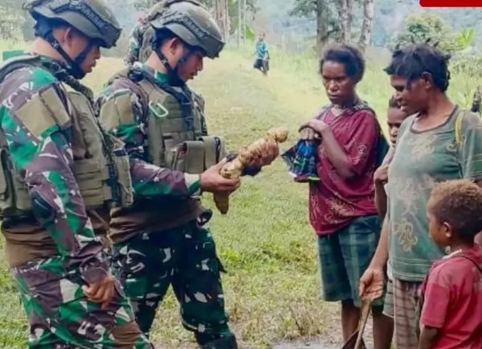 Di dataran Papua yang megah dimana Kabut selalu menyelimuti, mengantarkan Prajurit TNI untuk memborong hasil Tani masyarakat Papua. Dalam upaya mendukung pertumbuhan ekonomi lokal dan mempererat hubungan dengan masyarakat, personel Satgas Yonif 732/Banau dari Pos Jampul membeli hasil pertanian dari Masyarakat Papua di Kampung Jampul, yang terletak didepan Gereja Kemah Injil (Kingmi), Distrik Beoga Barat, Papua. Jum’at (27/06/2025).