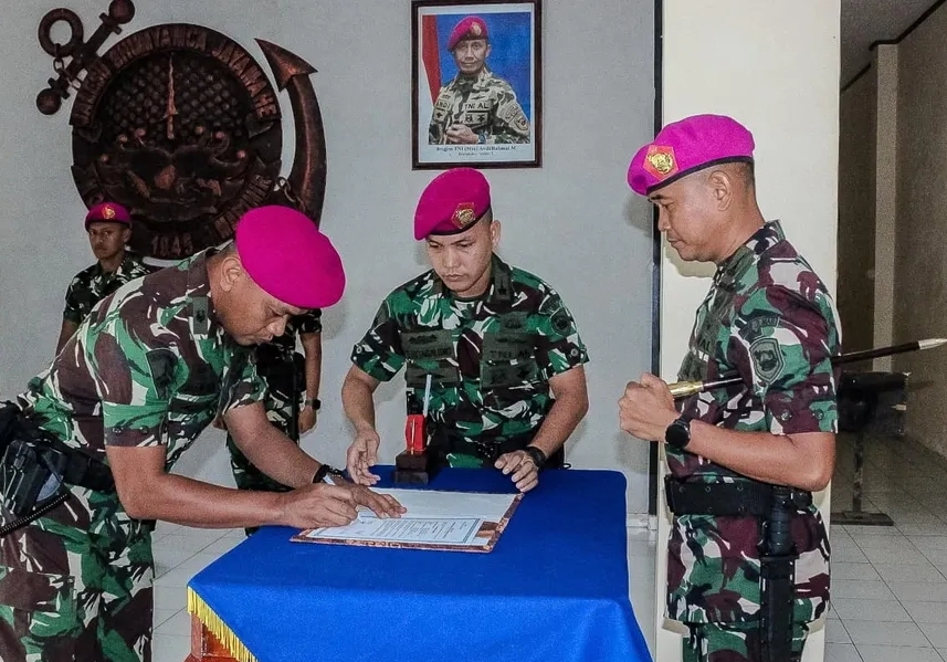 Komandan Batalyon Infanteri 11 Marinir, Letnan Kolonel Suherman, M.Tr.Opsla. Ikuti Pengukuhan jabatan Paslog Brigif 3 Marinir kepada Mayor Marinir Aditya Hari Wibowo yang dipimpin oleh Komandan Brigif 3 Mar Kolonel Marinir Irwanto, M.Tr.Hanla., M.M., bertempat di Loby Mako Brigif 3 Marinir, Kesatrian Marinir Abraham Octavianus Atururi, Distrik Salawati, Kab. Sorong, Papua Barat Daya. Jum’at (18/07/2025).