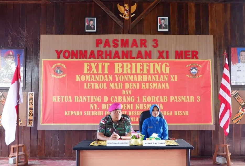 Menjelang berakhirnya masa jabatan sebagai Komandan Batalyon Marinir Pertahanan Pangkalan ( Danyonmarhanlan ) XI Merauke, Letkol Marinir Deni Kusmana didampingi Ketua Ranting D Cabang 1 Korcab Pasmar 3 Ny. Dita Deni Kusmana, melaksanakan Exit Briefing yang diikuti seluruh Prajurit dan Jalasenastri bertempat di Joglo Yonmarhanlan XI. Jl. Diko Trans Irian Wasur, Rimba Jaya, Merauke, Kab. Merauke, Prov. Papua Selatan. Jumat (18/07/2025).