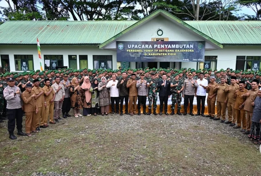 Suasana haru dan penuh semangat menyelimuti Markas Yonif TP-857/Gana Gajahsora (GG) yang terletak di Desa Turuecut, Kecamatan Mane, Kabupaten Pidie, saat digelarnya Upacara Penyambutan Personel Yonif TP-857/GG oleh unsur Forum Koordinasi Pimpinan Daerah (Forkopimda) Kabupaten Pidie, pada Kamis (17/7/2025).